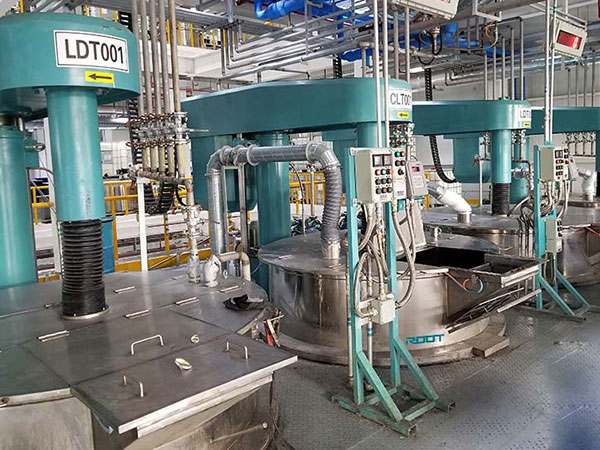- Dispositivos: Alimentador de polvo + Cámara de dispersión por cizallamiento + Molino de bolas + Recipiente de agitado para espesante + Contenedor de productos